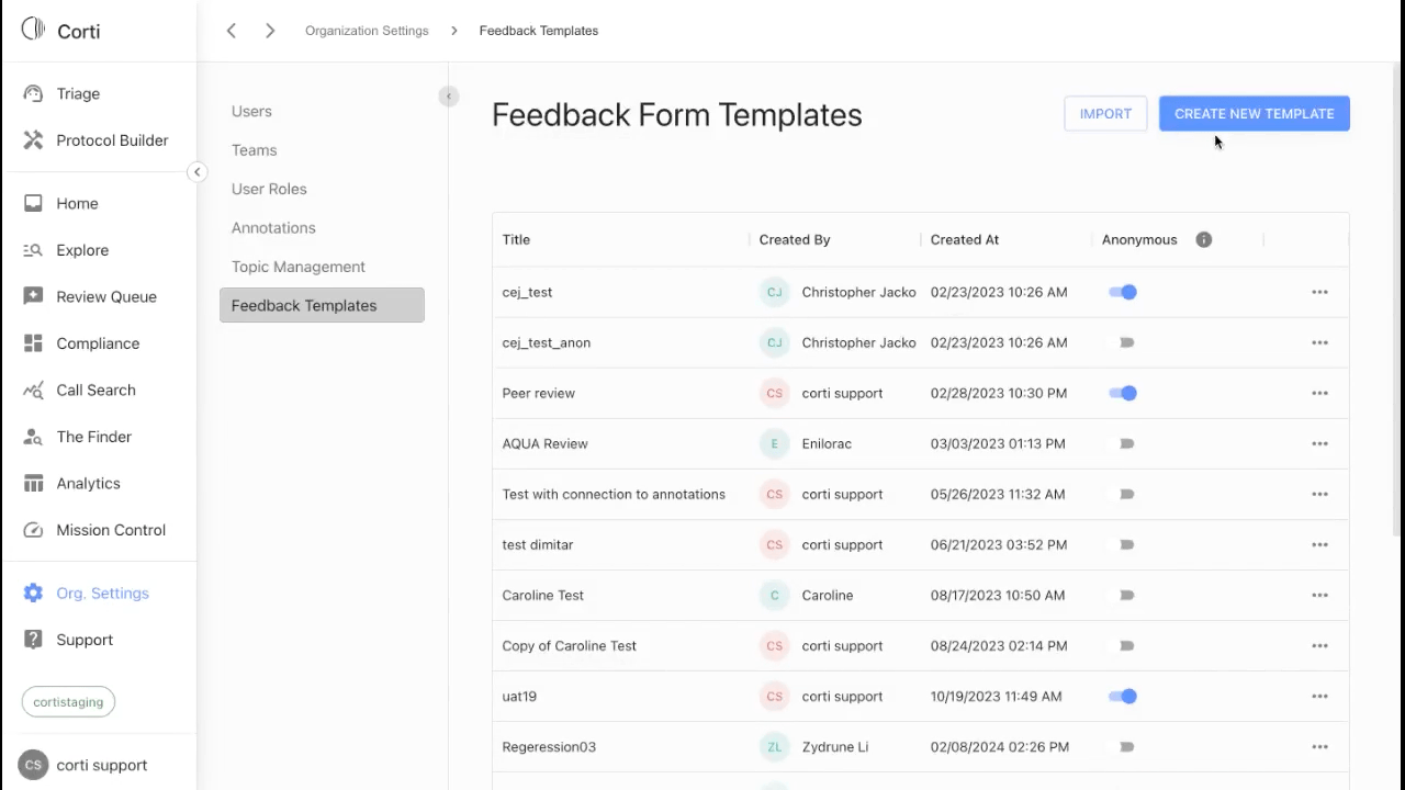 A review form can be marked as “Anonymous” to hide the identity of all users who submit feedback using the selected template. It can be done while creating a form if it is a new one:
