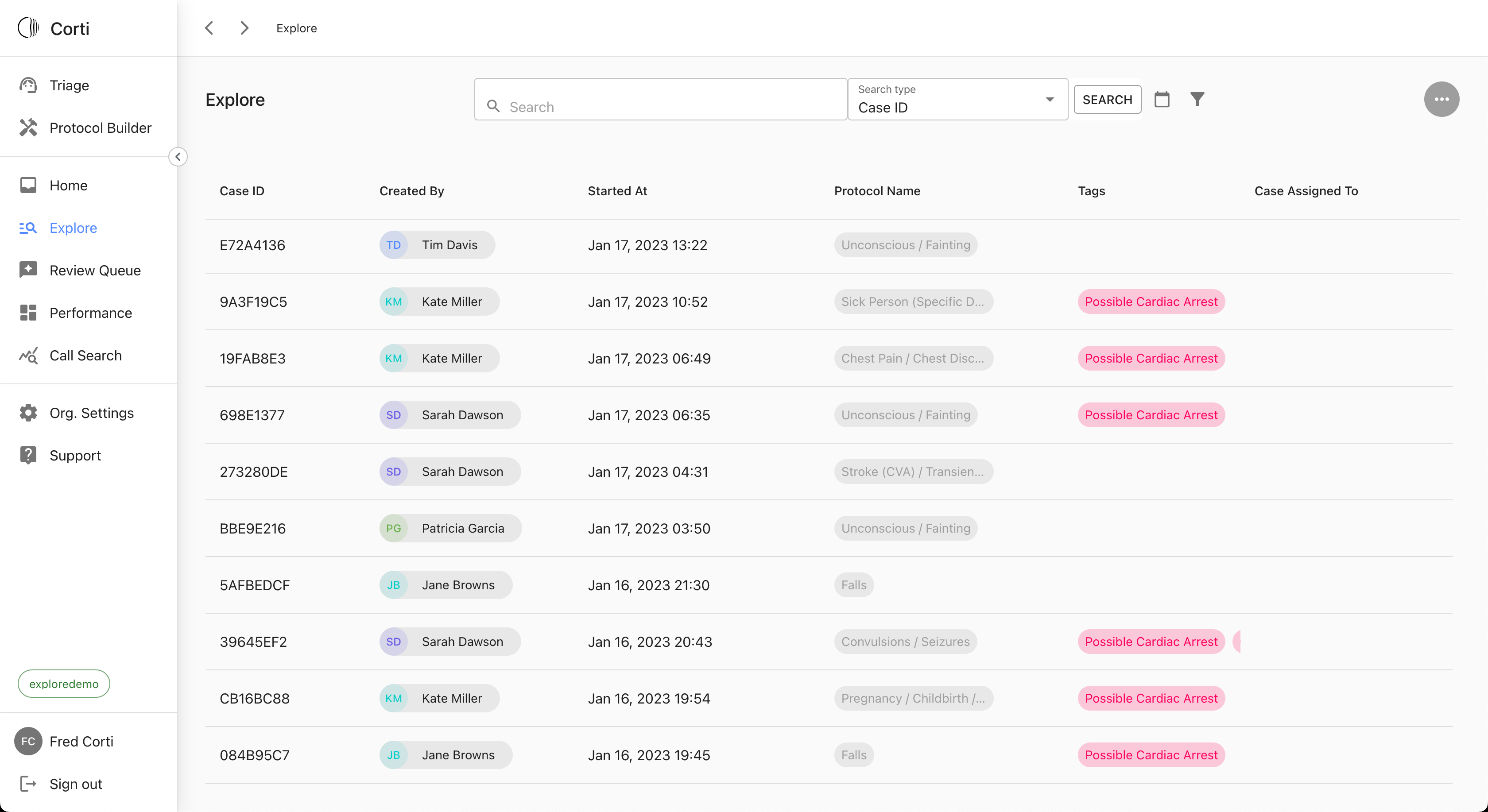 Explore is divided into 2 views: the Call List View, and the Single Case View.