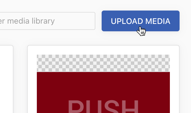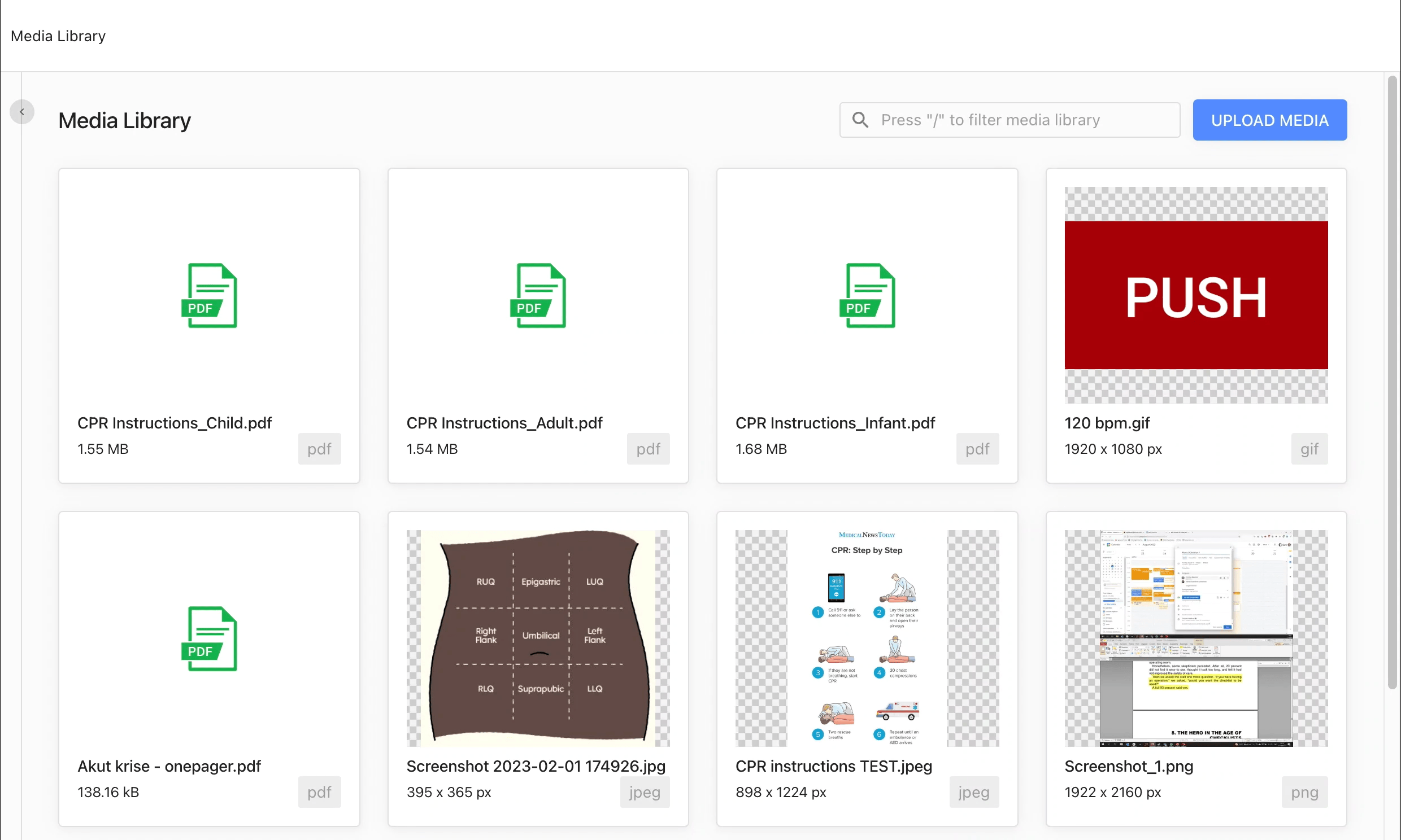 2. Once you have accessed the Media Library using one of the two methods above, the Media Library will show you all media that has been previously uploaded and is ready to be embedded into your protocol flow. To add additional media, click on the blue "Upload Media" button in the top right corner.