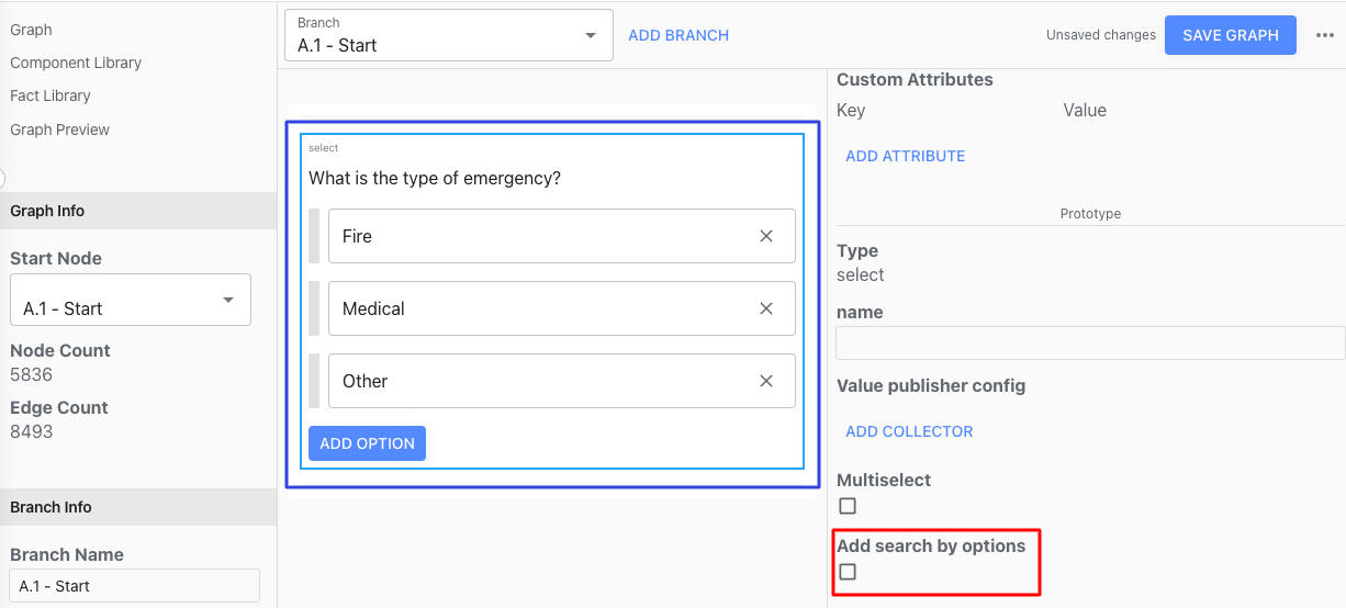 A search field will appear on the top of the block, to make it easier for the call-taker to find the option they are looking for: